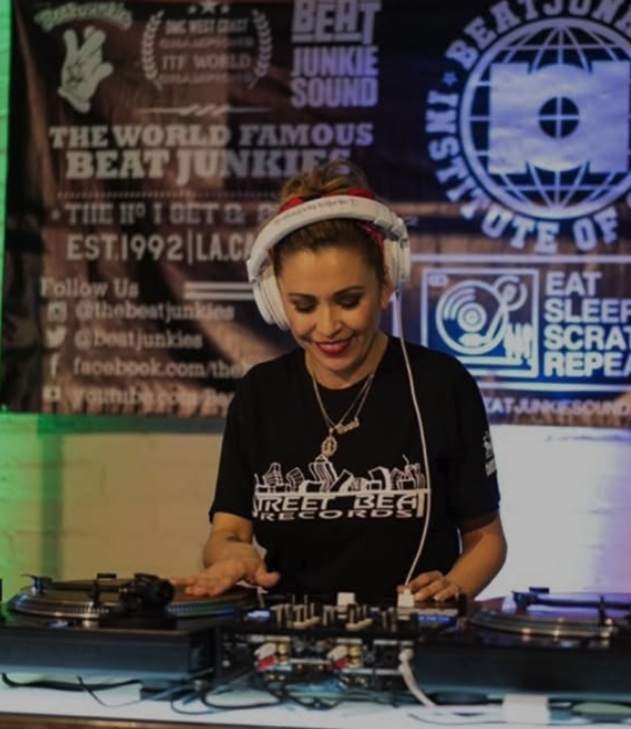 DJ Geenee is a proud graduate of the Beat Junkie Institute of Sound and a standout member of Dusty Donuts, 45 Bandits, and Ladies of Sound crews. Known as the Queen Selector, she’s built a reputation for her all-vinyl and 45-only sets that bring a timeless, soulful energy to every dancefloor. From rocking parties like Dre Day and Milk Crate Monday to holding down a residency at the Four Seasons Hotel in Beverly Hills, DJ Geenee blends deep crates with undeniable style. A regular presence on Twitch, she’s a selector’s selector and one to watch in the LA DJ scene.